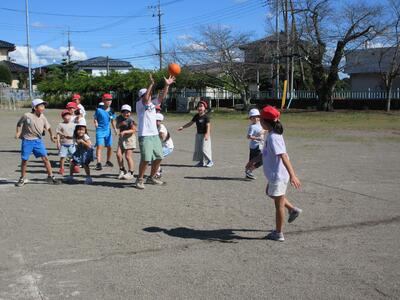 青い空が広がった昼休み、子どもたちは外で元気に遊んでいました。