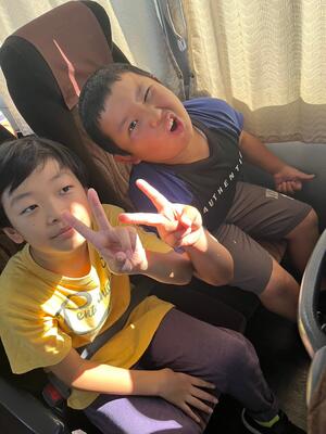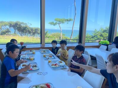お昼ご飯をおいしくいただき、予定時刻どおりに海浜自然の家を出発しました。