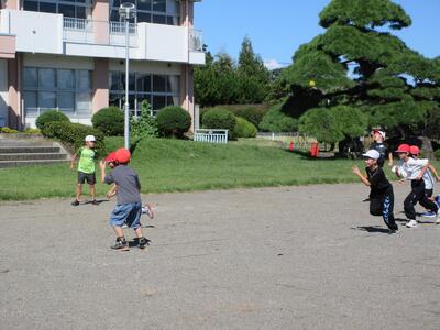 青い空が広がった昼休み、子どもたちは外で元気に遊んでいました。