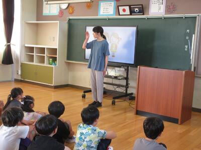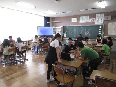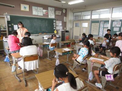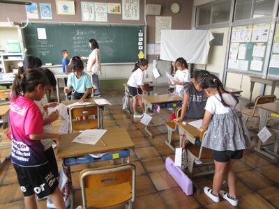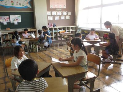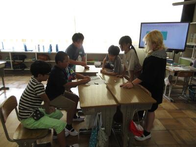 教室におじゃますると、「インタビュー」「夏休みビンゴ」「夏休みすごろく」等々を楽しみながら