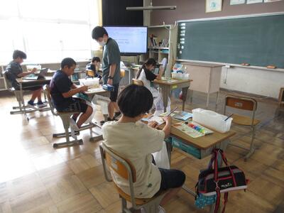 5年生は、テストに向けてそれぞれ練習問題を解いていました。