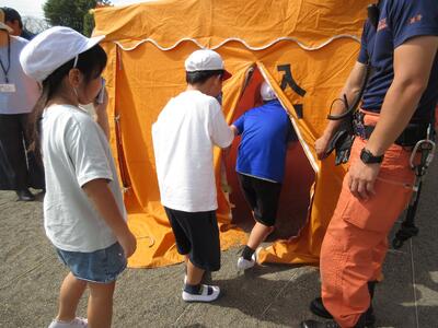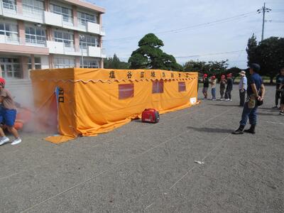 ひなんをした後に、消防署の方から煙の怖さを聞き、煙道体験をしました。