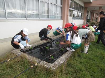 皆で協力して、パンジー、ビオラ、ノースポールの苗を植えました。