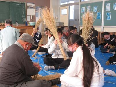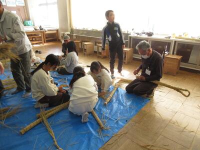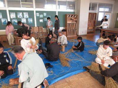 今日は、地域の方とのふれあい学習で、5年生が「ぼうじぼ」作りをしました。