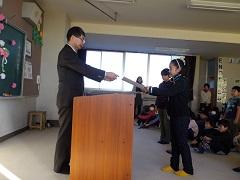 今日の朝会で、下野教育書道展、書き初め展、理科展、JA「ごはん・お米とわたし」作文コンクール、下野教育美術展の表彰を行い、入賞者の代表児童に表彰状を授与しました。また、表彰の前に、節分と立春に関する話と、「若者は、失敗を繰り返して成長するものだ」という話をしました。