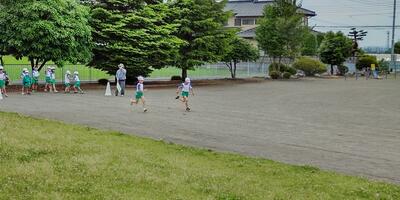 1年生、2年生は、50m走とボール投げの測定をしています。