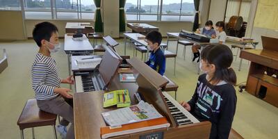4年生は、「音楽」の授業です。ソラシドレの音を使って曲を作っています。
