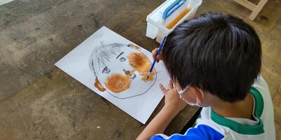3年生も「図工」の授業です。今日のめあては、「はだいろを工夫してぬろう」です。