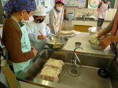 3年生が自分たちで育てた大豆を使って、豆腐作りに挑戦しました。ゲストティーチャーとして直井さんに来ていただき、指導してもらいました。みんなで協力して作った出来たての豆腐は、たいへんおいしかったです。