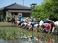 赤羽様の説明のもと田植えを始めましたが、児童は、水田の土に足をとられながらも楽しく田植えを行っていました。また、水田に、オタマジャクシやメダカがいるのを見つけると児童は歓声をあげていました。お忙しい中、田植えの指導をいただいた赤羽様、ボランティアとして参加していただいた保護者の皆様、御世話になりました。