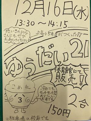 チラシにもあるように、冷やしてもモチモチで、本当に美味しい美味しいお米です。児童が、赤羽啓一様の指導を受けながら丹精込めて作った「ゆうだい21」。お忙しいとは思いますが、御協力くださるようお願いいたします。