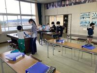 今日からのスポーツタイムは、縄跳びです。福祉・運動委員会が進行して行いましたが、児童は楽しく縄跳びを行っていました。休み時間になるとジャンピングボード(縄跳び練習補助具)の上で、縄跳びの様々な技に挑戦する児童が増えてきました。縄跳び運動は、運動量もあり、体力向上にはとても良い運動種目です。