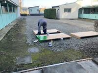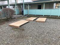 新しいジャンピングボードの製作を考えていましたが、平成29年まで本校に勤務されていた有本俊夫さん(毎年、持久走大会の時に月桂樹の冠を作っていただいております。)に相談したところ、快く製作を引き受けていただき、13日(日)にジャンピングボードを製作していただきました。
