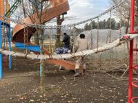 12日(土)に学校支援ボランティアの方々(地域コンシェルジュの鯉沼孝宏さん、齋藤理さん、PTA総務部長阿久津哲也さん、副部長島田裕司さん、PTA厚生部長川口崇さん、副部長吉橋俊之さん、学校支援ボランティアの飯村直久さん、齋藤和宏さん)が、ビオトープ周辺のイチョウの木の伐採・枝打ち作業を行ってくださいました。