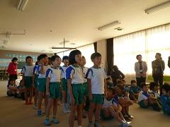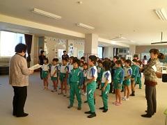 晴天のもと、持久走大会を行いました。距離は、1・2年生が1,000m、3・4年生が1,500m、5・6年生が2,000mです。子どもたちは、大会に備えて、スポーツタイムなどで毎日のように意欲的に練習を重ねてきました。その結果、出場した児童全員が完走するとともに好記録が続出しました。また、サプライズで有本労務主事手作りの月桂樹の冠を各学年の優勝者がかぶることができました。応援や交通通指導を担当してくれた保護者の皆様ありがとうございました。