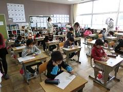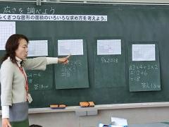 2校時に、4年生が算数の研究授業を行いました。単元名は「広さを調べよう」で、内容は「面積の求め方の工夫」でした。授業の前半の課題はクリアできましたが、後半の課題は難しくペアで協力して取り組んでもなかなか解決できませんでしたが、授業の最後にはやっと正解にたどり着きました。