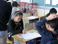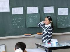 3校時に、6年生が算数の研究授業を行いました。単元名は「算数のまとめ」で、内容は「学習したことをもとに問題を解こう」でした。授業の前半は今までに学習した内容を活用して共通問題に取り組みました。後半は確認問題と発展問題の二グループに分かれ、問題を解きました。さすが6年生で、自分の考えを分かりやすく発表していました。