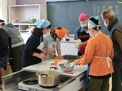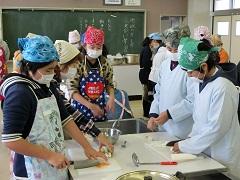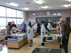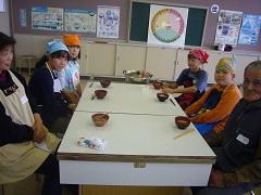6年生が地域の方とのふれあい学習を行いました。まず、戦争中の生活の様子のお話を聞き、その後、すいとん作りに挑戦しました。戦争中のお話は、どの児童も真剣に聞いていました。また、すいとん作りは、地域の方から教わりながら調理し、おいしく食べることができました。