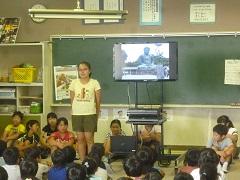 6年生は修学旅行の報告です。お気に入りの写真をもとに思い出をひとりひとり発表しました。ユーモアも交えた分かりやすい発表に、2~5年生は釘付けでした。次回の1・3・5年生の発表が楽しみです。