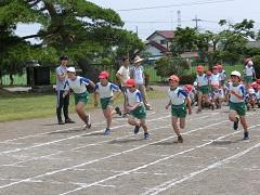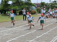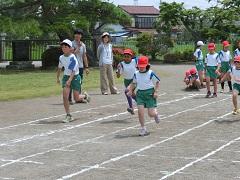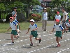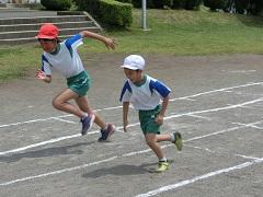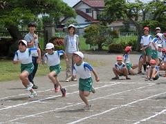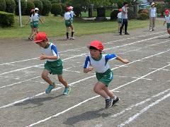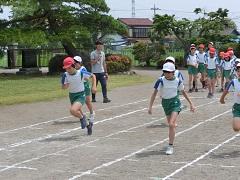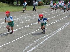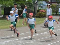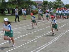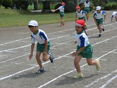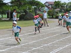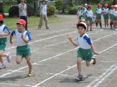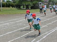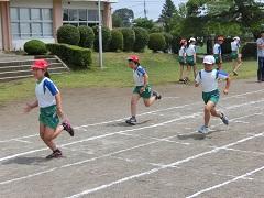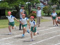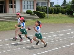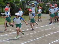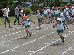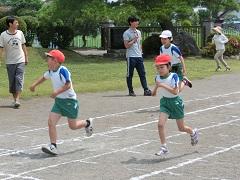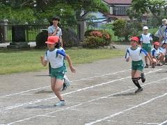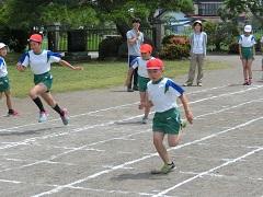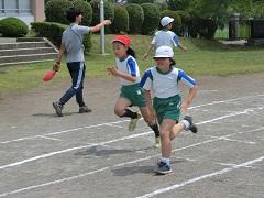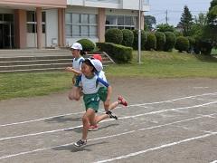 今日のスポーツタイムは約50mハンデ走を行いました。梅雨に入っていますが青空の下で心地よい汗をかきました。