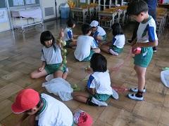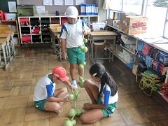 夏休みが明け授業が再開し、ほぼ10日間が過ぎました。子どもたちは学校の生活ペースを取り戻し、意欲的に授業に参加しています。1年生は、外国語活動で二人一組になり、英語で名前を聞き、英語で答える活動をしました。また、体育では「後ろ向きステップ」や「けんけんぱ」などのいろいろなステップの練習をしました。