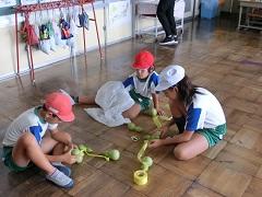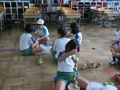 4年生は理科で、自分たちで育てたひょうたんを収穫し、乾燥させる準備をしました。見事なひょうたんがたくさん収穫できました。