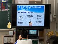 2校時の道徳の時間に、5・6年生が「シトラスリボン」についての学習を行いました。この活動は、誰もが新型コロナウイルス感染症に感染するリスクがあるなか、たとえ感染しても地域のなかで笑顔の暮らしを取り戻せることの大切さを伝え、感染された方や医療従事者が、それぞれの暮らしの場所で「ただいま」「おかえり」と受け入れられる雰囲気をつくり、思いやりがあり暮らしやすい社会を目指すプロジェクトです。「シトラスリボン」のそれぞれの輪は、「地域」「家庭」「職場(または学校)」を表現しています。