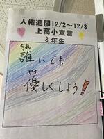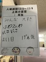 12月10日の「世界人権デー」にあわせて先週から、「上高根沢小学校人権週間」として様々な取組みを行っています。児童一人一人が、意識を高め行動できるよう、今後も継続的、計画的な取組みを行っていきたいと思います。