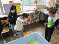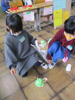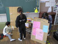 12月3日(木)の2時間目に、2年生がお店屋さんごっこをしました。1年生が喜ぶおもちゃを考えて、様々なおもちゃを作り、1年生を招待して行いました。