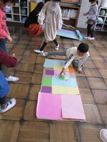 招待された1年生は、2年生が考えた遊びを楽しそうに行っていました。