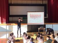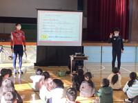 2・3校時に、宇都宮ブリッツェン運営会社サイクルスポーツマネージメント株式会社の3名の方を講師としてお招きして交通安全教室を行いました。2校時は、全学年で交通ルールやマナーなどの話を。3校時には、1~3学年(歩行中の交通ルールを基本から伝えるの動画)4~6学年(校庭に移動しての実技)の二班に分かれて行いました。