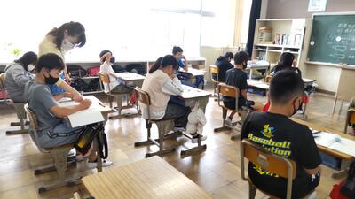 6年算数の授業です。学習したことが定着しているかを確認しながら進めていきます。