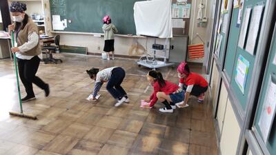 今日の朝の活動は清掃です。毎週火曜日と木曜日の朝の活動は清掃ですが、今日から1年生が縦割り班での清掃活動に仲間入りです。6年生の班長さんが教室に迎えに来てくれました。ぞうきんの絞り方、ほうきの使い方、早く上手になるといいですね。