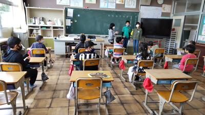 毎月1回、業間の時間(2校時と3校時の間の長休み時間)は、縦割り班である「ふれあい班」を中心としてふれあいを目的とした様々な活動に取り組みます。今日は、今年度初めての「ふれあいタイム」でした。班ごとに一人一人自己紹介をしました。