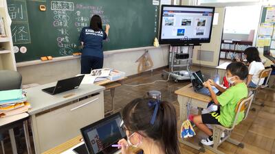 GIGAスクール構想により、児童一人一台のタブレットが配備され、授業での活用が開始されました。