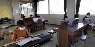3年生は、「音楽」の授業です。「パフ」の合奏練習をパートごとにしています。
