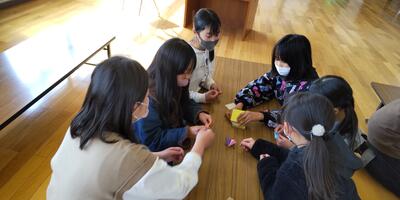 6年生を送る会に向けて、4年生、5年生を中心に準備が進められています。折り紙で何か折っているようです。タブレットで折り方を確認している子もいます。何が出来上がるかは秘密だそうです。