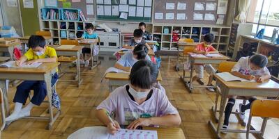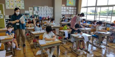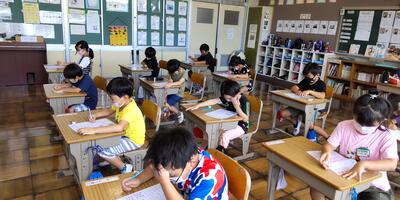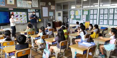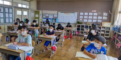 毎週月曜日の朝の活動は、「スタディタイム」です。本日は早朝から30℃超えの暑さとなっておりましたので、朝の活動より各教室のエアコンを稼働いたしました。子どもたちは落ち着いて取り組んでいます。