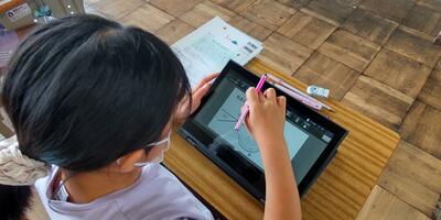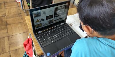 4年生は、「算数」の授業です。ムーブノートを使って、180度より大きい角度の測り方について考えています。ヒントも出てきましたね。
