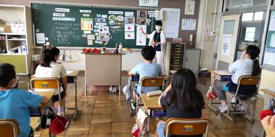 2年生は、「外国語活動」の授業です。野菜の名前をすらすらと英語で唱えています。