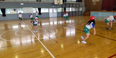2年生は、「体育」の授業です。いろいろな走り方に挑戦していますね。