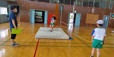 6年生は、「体育」の授業です。今日は、何㎝に挑戦しているのでしょうか。