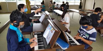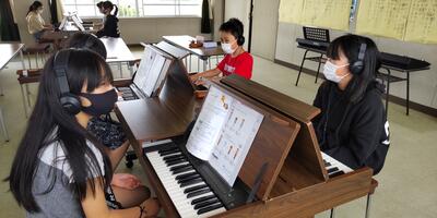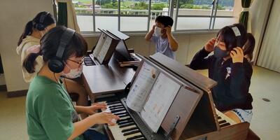 5年生は、「音楽」の授業です。今日は、和音について学習していますね。