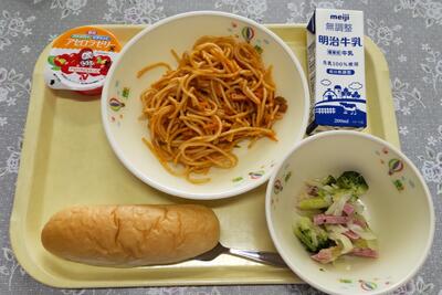 ナポリタンは、外国で生まれた料理だと思う人も多いかもしれませんが、実は日本で生まれた料理です。今日は、地元でとれた玉ねぎ、にんじん、ピーマンなどたくさんの野菜とケチャップで味付けした具だくさんのナポリタンです。
