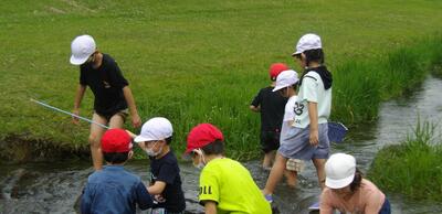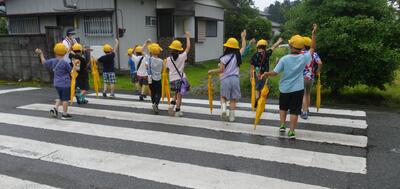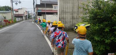 1年生は、「生活科」の授業です。「学校のまわりをあるこう」というめあてで本日は、校外学習です。のびのび保育園にもお邪魔して園児の皆さんと園庭で交流会も行いました。