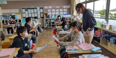 6年生は、「国語」の授業です。短歌を詠み合っていくのですね。まずは、先生の短歌ですね。