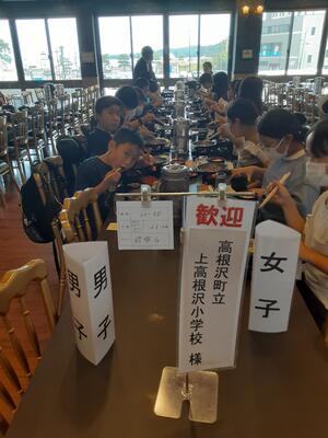 この旅最後の食事です。ずんだもち、笹かまぼこに続きご当地グルメ第3弾、牛タンをいただきました。この後、たくさんのお土産とお土産話を持って、上高小に戻ります。