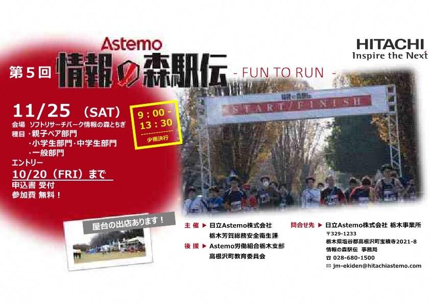 ⒒月25日(土)、日立Astemoさん主催の「情報の森駅伝大会」が開催されますので、お知らせします。