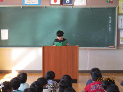1学期の終業式を挙行しました。1学期は、1年生97日、2~6年生99日の授業日数がありましたが、大きな事故なく無事に過ごすことができました。式の中で作文発表がありましたが、全校生79名を代表して3名の子が1学期がんばったことや2学期がんばりたいことを発表してくれました。3人とも発表の態度や声の大きさ、内容ともとてもすばらしかったです。明日から5日間の秋休みになります。ぜひ御家庭で、秋を満喫していただければと思います。12日(木)から2学期がスタートしますのでよろしくお願いします。