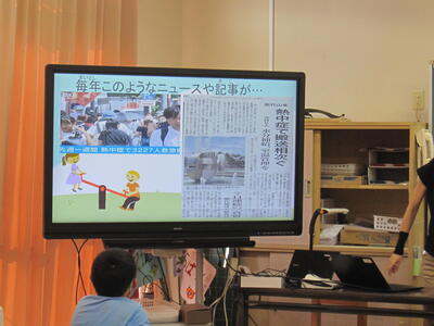 養護教諭による保健指導を実施しています。今日は2年生が朝の学級裁量の時間に「熱中症」について話を聞きました。